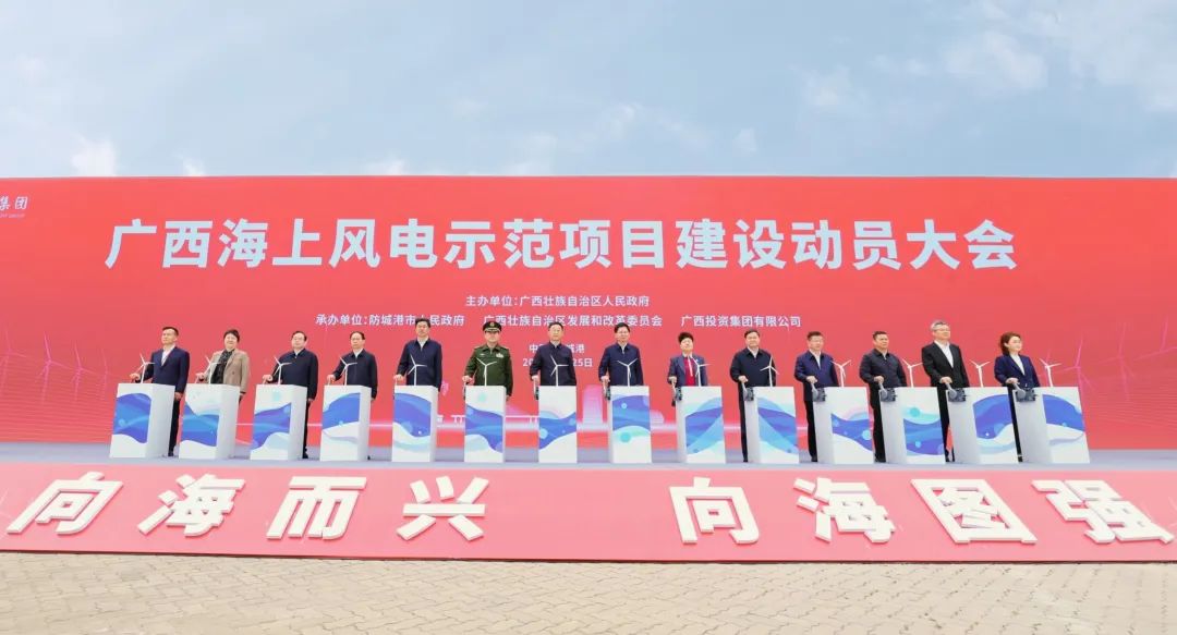 3月25日,广西海上风电示范项目建设动员大会在防城港市举行,由广西投资集团推进建设的广西海上风电示范项目全面启动,向着实现广西海上风电“零的突破”迈出坚实一步。