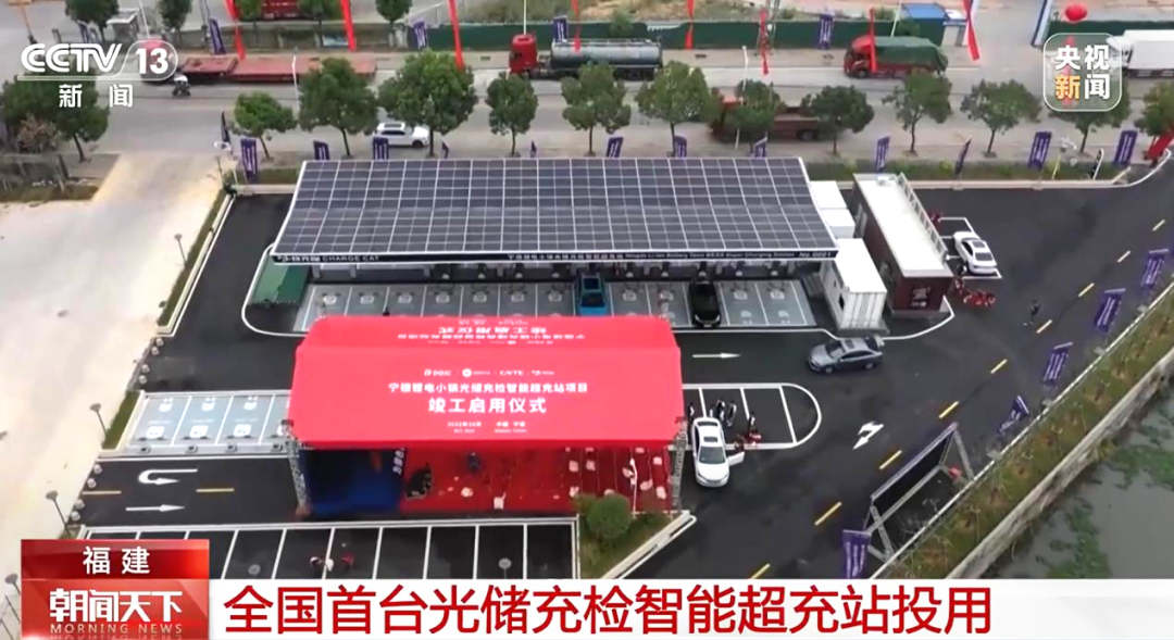 “光储充检智能超充站”在福建宁德锂电小镇建成启用,图片来源:朝闻天下