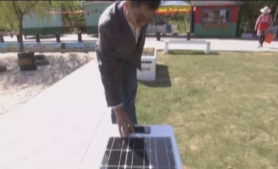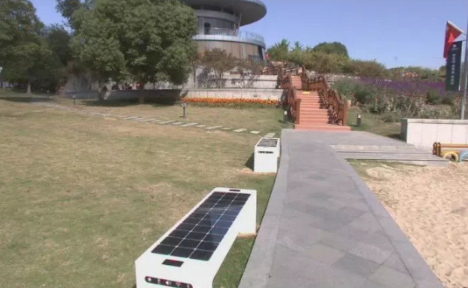考虑到我们整个公园的一个特点,布置了类似于像我们的一个路灯啊,光伏座椅呀,然后还有光伏路啊,都是按照我们公园的一些特点来设计来制造来安装。