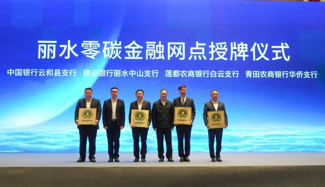 丽水市气候投融资试点工作推进会上举办了“零碳”金融网点授牌仪式。会后,生态环境部等单位与会代表实地调研了“零碳”金融网点。