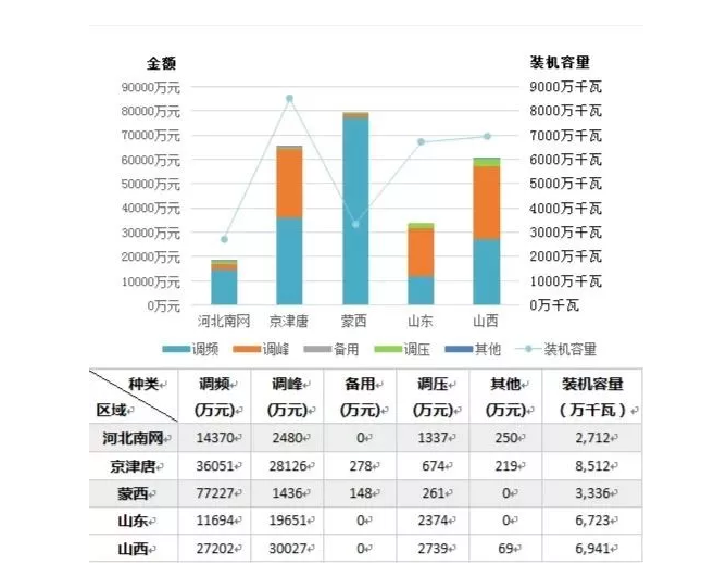 今年五月,国家能源局曾发布2018年度全国电力辅助服务市场数据。单从调频服务来看,蒙西市场补偿总量达77227万元,这个数字不仅冠绝华北,在全国也独树一帜,比今年储能调频市场异常火热的广东还高出一倍多(32329万元)。