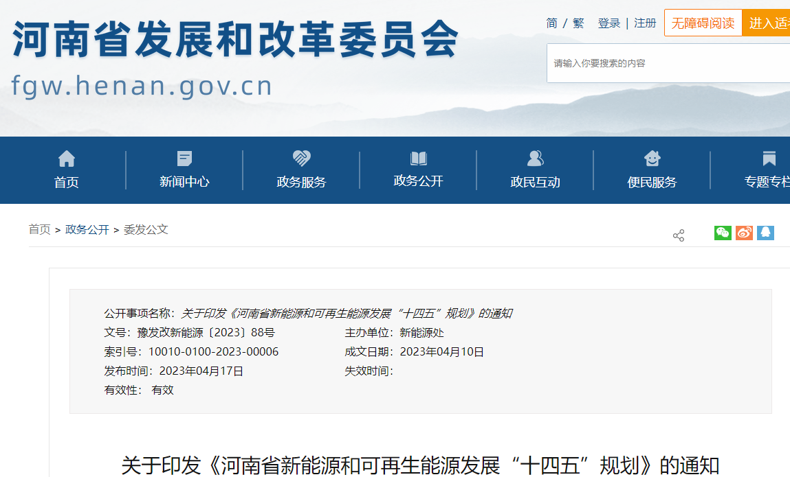关于印发《河南省新能源和可再生能源发展“十四五”规划》的通知