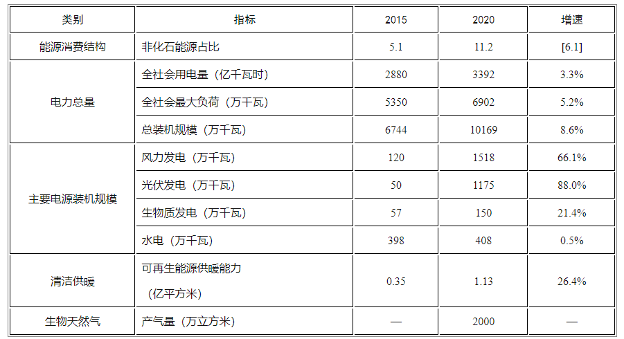 开发规模迅猛增长。截至2020年底,全省可再生能源发电装机达到3251万千瓦,占发电总装机的32%,较“十二五”末提高23.4个百分点,成为我省第二大电源及新增装机的增量主体。风电、光伏发电装机年均增速分别达到66.1%、88.0%,分列全国第7位、第11位。地热能供暖面积突破1亿平方米,较“十二五”末增长1.8倍。新增农林生物质供暖面积1000万平方米,建成兰考、长垣、新蔡三个生物天然气示范项目,年提纯生物天然气2000万立方米。