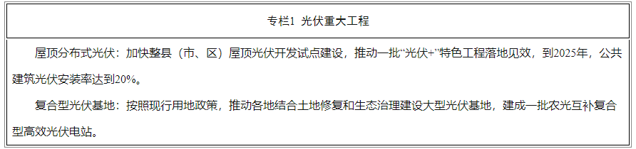 加快整县分布式光伏试点建设,充分利用党政机关、校园、医院、基础设施、公共建筑等领域发展屋顶分布式光伏,打造一批“光伏+”特色工程,形成示范效应;结合乡村振兴战略,支持多模式创新合作建设户用光伏项目。“十四五”期间,新建工业园区、新增大型公共建筑分布式光伏安装率力争达50%以上。