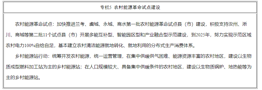 着力将兰考打造成全国农村能源革命典范,持续推进虞城、汝州等14个农村能源革命试点县(市)建设,探索建立多能互补、城乡统筹的乡村能源生产消费新模式。实施乡村能源站行动,建设具备农村能源诊断检修、电动汽车充换电服务、生物质成型燃料加工等能力的乡村能源示范站,提高农村能源公共服务能力。推动农村能源数字化智能化发展,并与农业农村生产经营深度融合,提高农村智慧用能水平。鼓励农村能源服务商业模式和运行机制创新,引导社会主体参与,逐步完善农村能源服务体系。