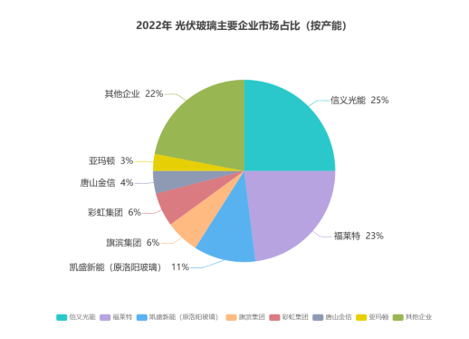 光伏玻璃行业具有显著的马太效应,行业格局较为集中,前七名企业占据了78%的光伏玻璃市场。从产能来看,双寡头的市场格局仍然显著,信义光能、福莱特以25%和23%的市场份额占据了半壁江山,与后五名企业差距悬殊。