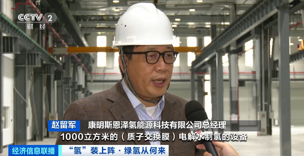 康明斯恩泽氢能源科技有限公司总经理 赵留军:1000立方米的质子交换膜电解水制氢的设备一年生产100台。优秀的供应链能力能够快速把物料成本跟制造成本给降下来,适应于中国市场的需求,三到五年之内,成本降幅预计达40%-50%。