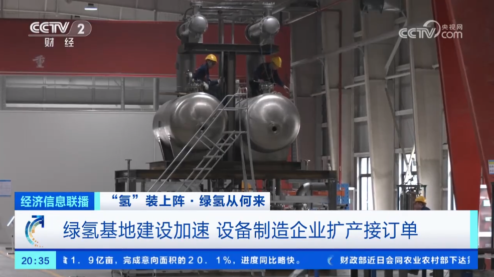 在四川德阳,记者来到了小虎岛示范项目制绿氢设备的生产企业,它是通过质子交换膜电解水制氢,比较适合应用在风电光伏项目,目前设备还没有大规模量产,成本比较高。