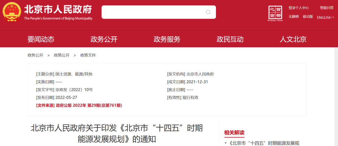 去年5月,北京市印发《北京市“十四五”时期能源发展规划》,其中提到,加快环京调峰电源点建设,推动燃机深度调峰改造,推动新型储能项目建设。到2025年,本市形成千万千瓦级的应急备用和调峰能力,电力应急资源配置能力大幅提升,进一步提高新能源消纳水平。