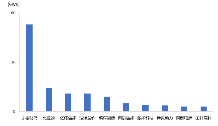 2022年度,全球市场中,储能电池出货量排名前十位的中国储能技术提供商,依次为:宁德时代、比亚迪、亿纬储能、瑞浦兰钧、鹏辉能源、海辰储能、派能科技、远景动力、南都电源和国轩高科。