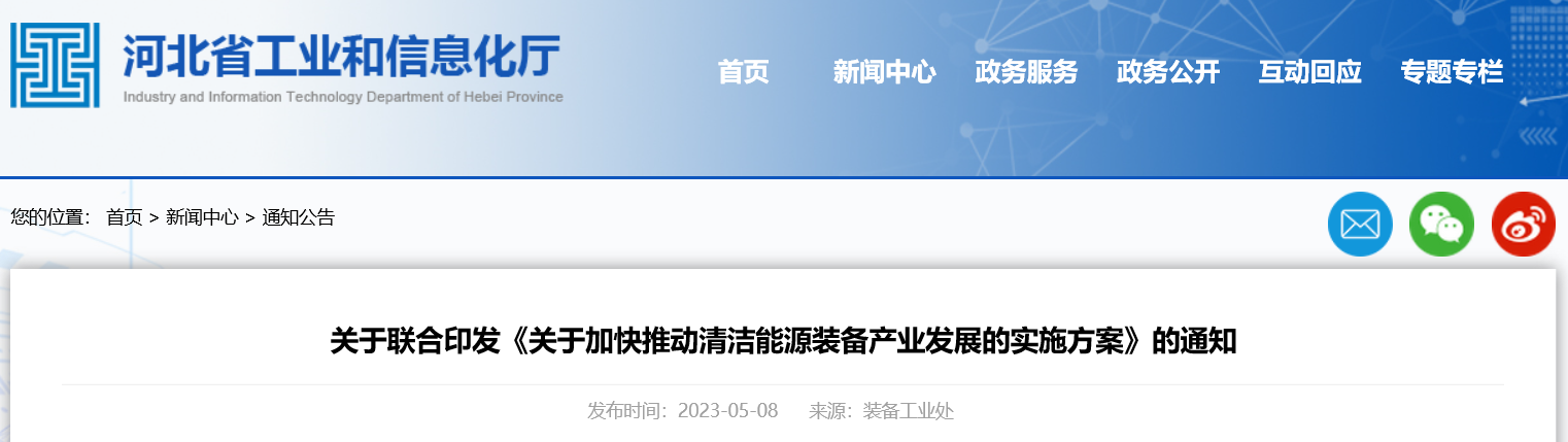 日前,河北省工业和信息化厅等部门联合印发《关于加快推动清洁能源装备产业发展的实施方案》的通知。
