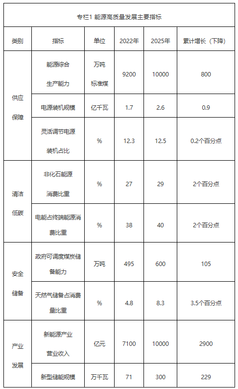 专栏1 能源高质量发展主要指标