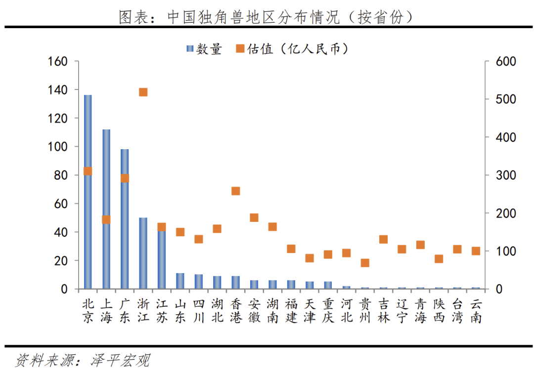 不同行业领域的独角兽上市情况、上市后估值情况、以及是否能够长期稳定地维持在上市时的估值水平:一是能够反应在某一“专、精”领域的国内企业是否能够做到行业领先,是否具备实现国产替代能力;二是能够反映当前经济结构中不同领域的活跃程度、市场化发展程度以及关注热度。