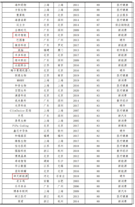 锂电、新能源车、光伏、风电是相对成熟赛道。比如广汽埃安,主营新能源车,是估值最高的新能源车独角兽。锂电领域,独角兽卫蓝新能源创造了“最快电动汽车充电技术”,手握多项专利与核心技术。蜂巢能源是专业锂离子电池系统提供商,专注于新能源汽车动力电池及储能电池系统的研发、生产和销售。光伏领域,中国是光伏全球装机增量的最大贡献者。独角兽正泰安能市占率接超30%,累计用户数量突破80万户。风电领域,远景能源以智能风电为切入,为企业、政府、城市提供零碳技术。