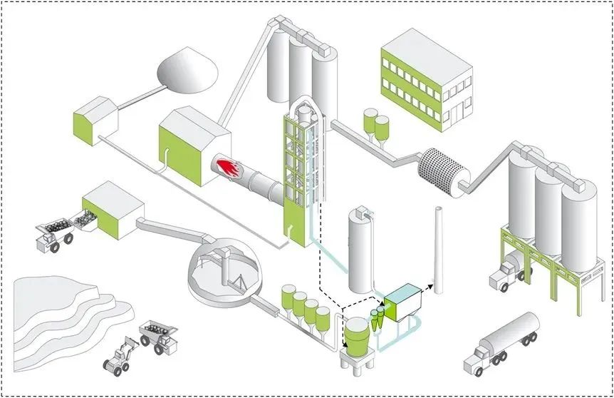 就目前普遍水泥生产工艺而言,二氧化碳排主要源于燃料燃烧和熟料的生产,其生产过程中生料预分解和回转窑两道工序又占了约90%的碳排。