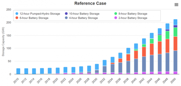 根据NREL的一些数据,我们可以快速了解一下储能系统,12小时抽水蓄能在很长一段时间内主导了美国的储能市场。随着时间的推移,越来越多不同尺寸的电池投入使用。随着储能需求的增加,需要部署更长的可持续时间设施。到2050年,NREL预计将部署约9.5GW的10小时电池储能。这足以为700多万个家庭供电10个小时!