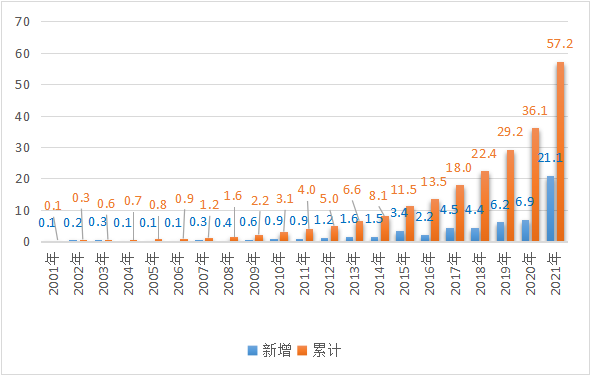 1991年,全球首个真正意义上的海上风电场——Vineby海上风电项目在丹麦建成投产。2007年12月,中国首座海上风电站在渤海绥中油田并网发电。2021年,全球新增海上风电装机21.1GW,其中中国占80%;全球累计海上风电装机57.2GW,其中中国占48%。当年,中国海上风电装机容量跃居世界第一。