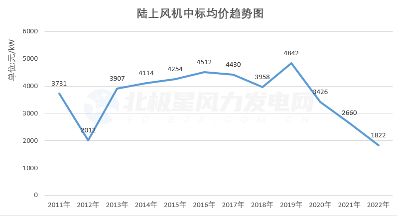 大型化叠加竞争加剧,风电整机中标均价持续下降。2022年,陆上风电设备公开招标中标价全年降幅达13%,海上风电历时更短,全年下降幅度23.5%,可谓全面平价后即低价。