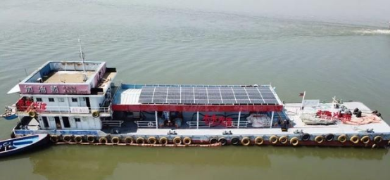 中石化首次在加油船上进行光伏发电,加油船项目位于佛山市南海区小塘,铺设在屋顶表层的组件为建筑物增加了一层隔热层,室内温度可降低5至6度,有效降低空调负荷约20%,大大的降低了能耗成本。