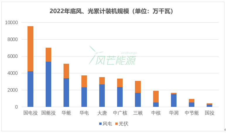 风芒能源不完全统计,2022年共释放1.4亿千瓦风电指标,有近20家央企获取了其中的60%。而98家在册国资委央企,已有近50家央企进入新能源领域,国有资本产业同质化严重。