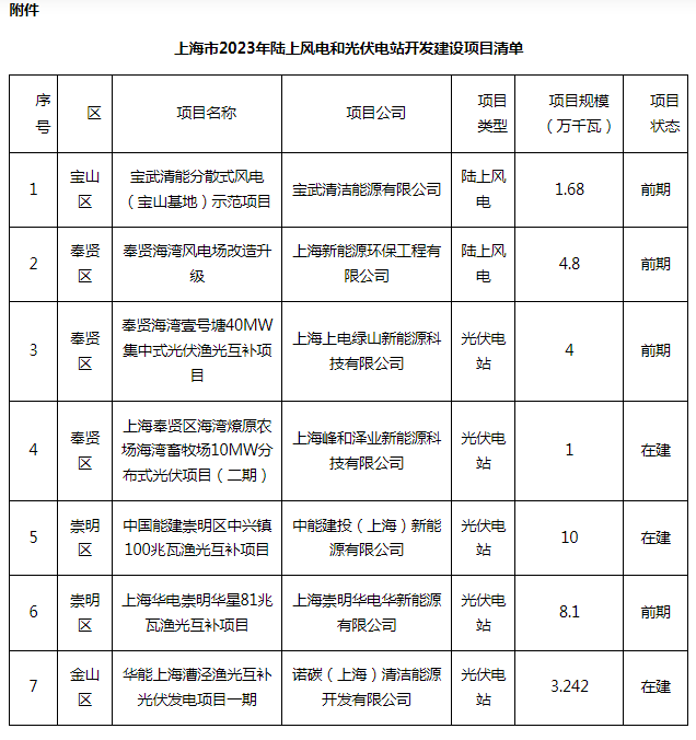 两个陆上风电项目,五个光伏电站项目!上海市2023年度陆上风电、光伏电站项目清单公示