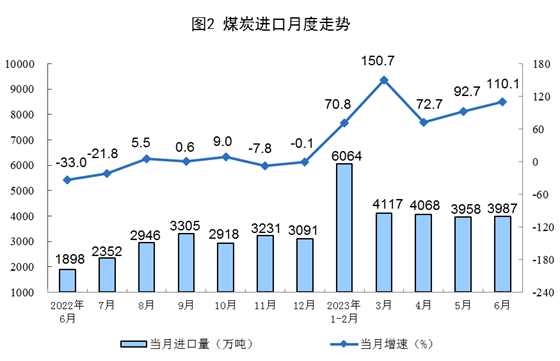 原煤生产稳定增长,进口高位增长。上半年,生产原煤23.0亿吨,同比增长4.4%。进口煤炭2.2亿吨,同比增长93.0%。6月份,生产原煤3.9亿吨,同比增长2.5%。