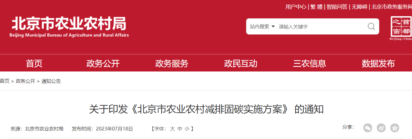 日前,北京市农业农村局关于印发《北京市农业农村减排固碳实施方案》的通知。