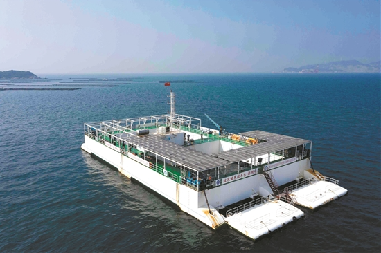 这艘名为“澎湖号”的大船,长60米、宽28米、高16米,是我国首个半潜式波浪能养殖旅游平台。