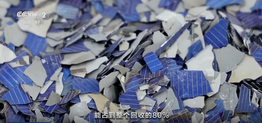 总台央视记者 王耐:一块废弃的光伏组件,经过处理之后,会形成这种混杂的物料。再经过分选之后,可以形成焊带、玻璃、碎电池。