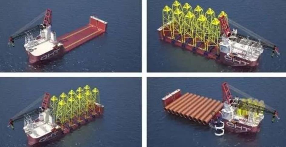 该船配备一台3000吨的主吊机,可在主甲板浸没的情况下执行重型起重作业,能够运输和安装多达10个1500吨的超大型导管架基础或11个2000吨的XXL型单桩,以及用于安装预期最大海上风机的过渡部件。