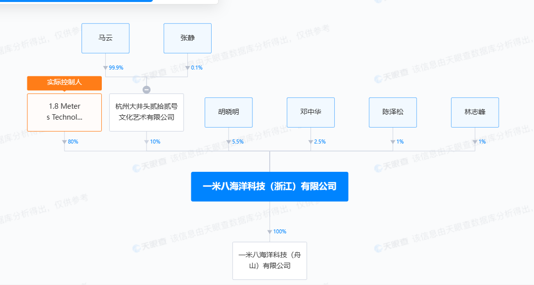 根据天眼查信息,对于该公司,1.8 Meters Technology Holding Limited持股80%,杭州大井头贰拾贰号文化艺术有限公司持股10%。