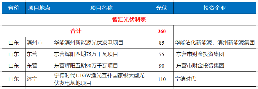 山东有4个项目入选第三批风光大基地,均为光伏项目,总规模为3.6GW,主要投资企业包括:华能集团&滨州新能源、东营财金、宁德时代。