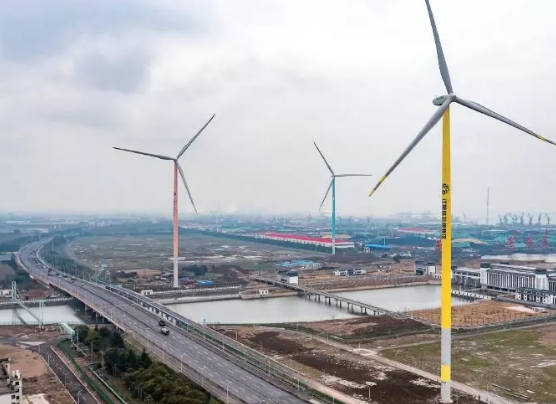 容量为2.2兆瓦、131米风轮直径的分布式风电机组,通过远景能源开关站接入电网升压站,全额上网,与城市环境友好融合