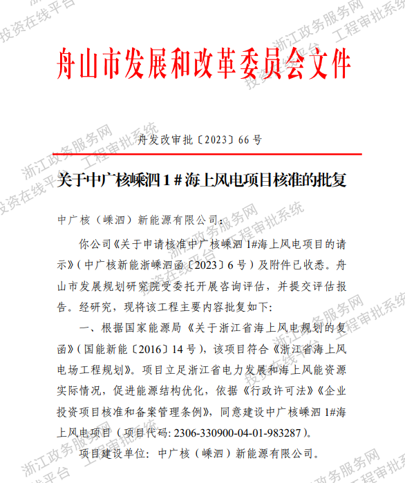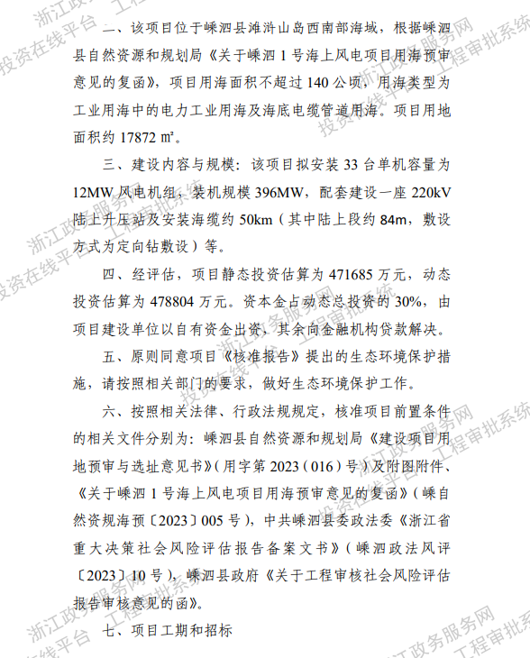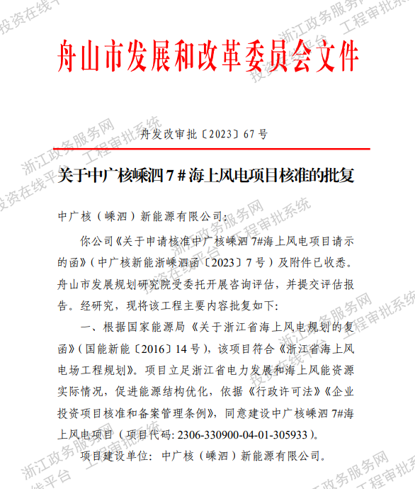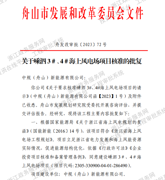 其中,中广核嵊泗1#海上风电项目位于嵊泗县滩浒山岛西南部海域,装机规模396MW;