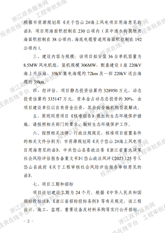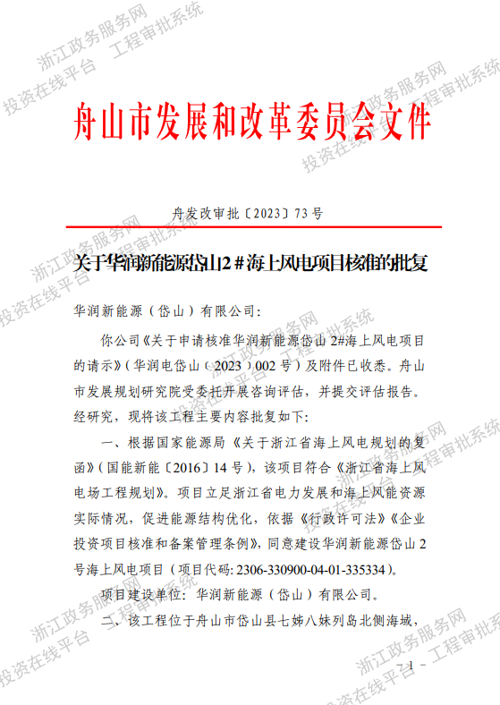 华润新能源岱山2#海上风电项目位于舟山市岱山县七姊八妹列岛北侧海域,装机规模306MW;