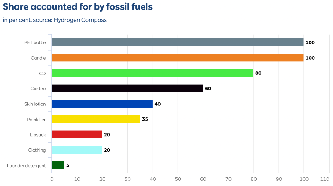 化工行业能源消费和排放的明显不匹配是因为该行业使用化石燃料作为基本材料。化学工业不仅使用煤炭、石油和天然气作为能源,还将这些资源作为原料分解为元素,主要是碳和氢,以便重新组合生产化工产品。这就是该行业生产氨和甲醇等基本材料的方式,然后将其进一步加工成塑料和人造树脂、化肥和油漆、个人卫生用品、清洁剂和药品。所有这些产品都含有化石燃料,有些甚至完全由化石燃料组成,燃烧或消费产生的温室气体占该行业排放量的一半,另一半来自转化过程。