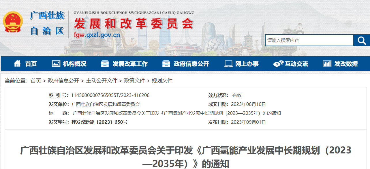 广西壮族自治区发展和改革委员会关于印发《广西氢能产业发展中长期规划(2023—2035年)》的通知