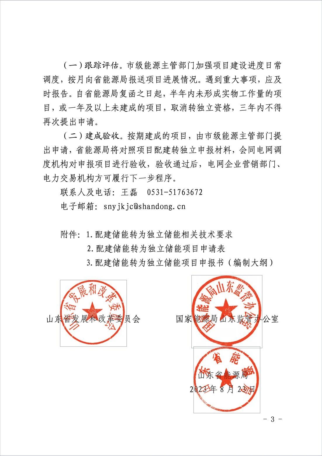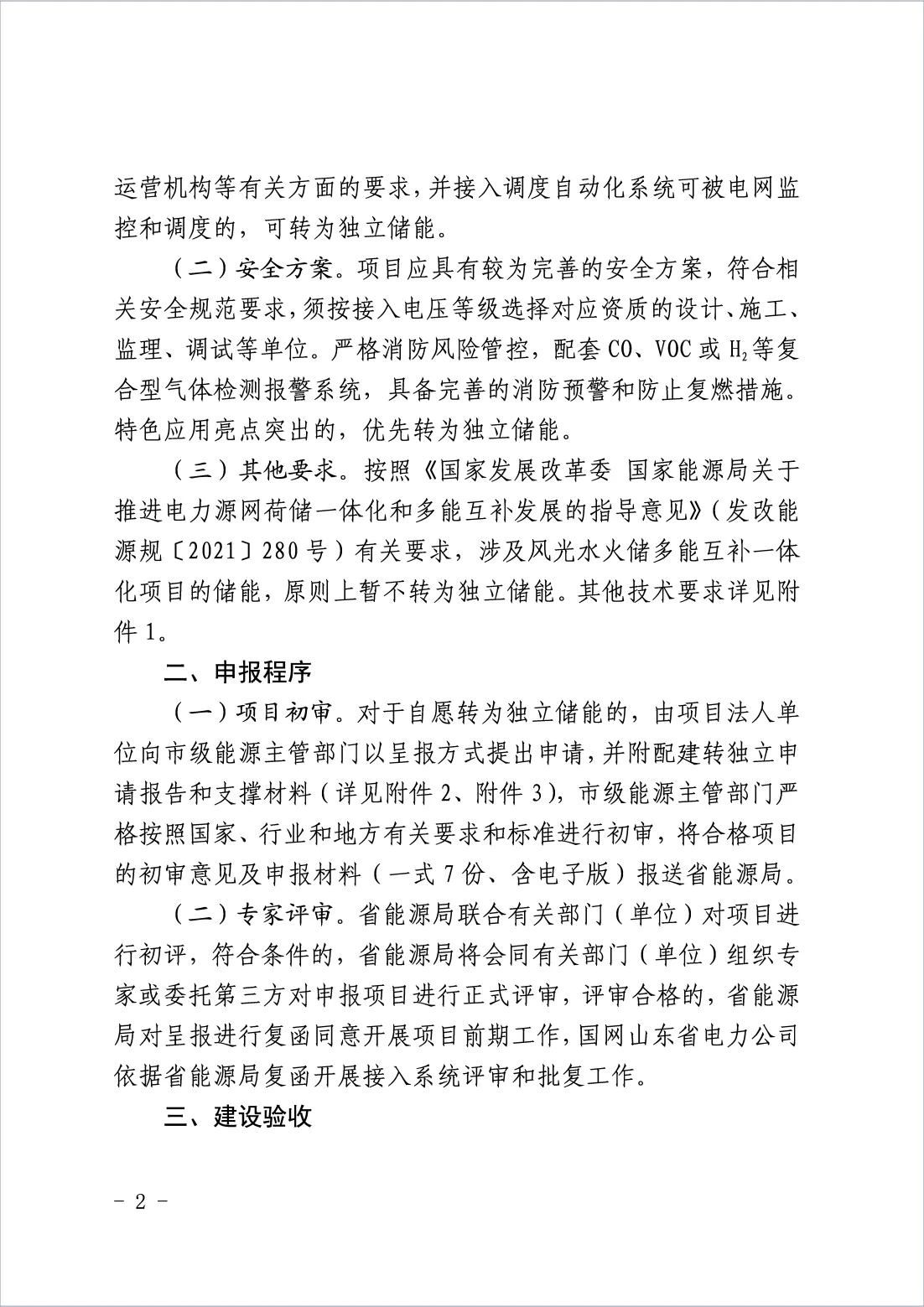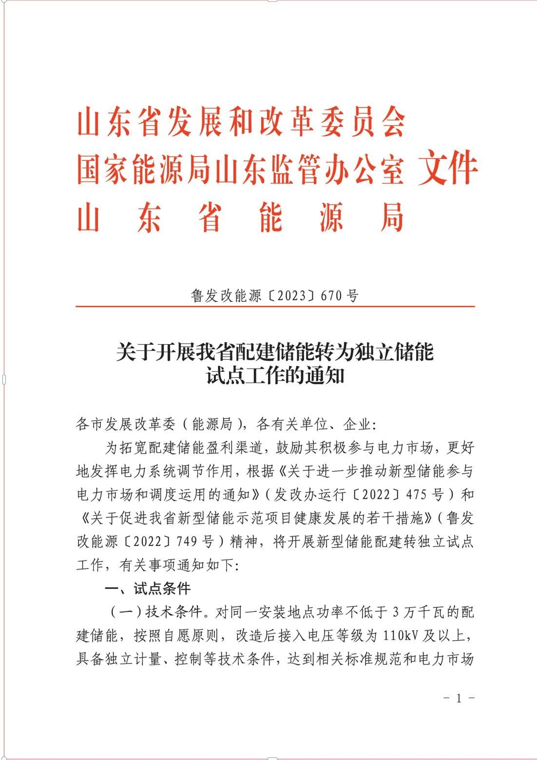 为拓宽配建储能盈利渠道,鼓励其积极参与电力市场,更好地发挥电力系统调节作用,根据《关于进一步推动新型储能参与电力市场和调度运用的通知》(发改办运行〔2022〕475号)和《关于促进我省新型储能示范项目健康发展的若干措施》(鲁发改能源〔2022〕749号)精神,省发展改革委、山东能源监管办、省能源局联合印发了《关于开展我省配建储能转为独立储能试点工作的通知》(以下简称《通知》)。
