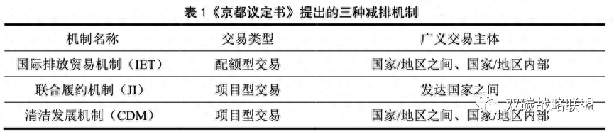 从碳排放权的来源来看,《京都议定书》提供的减排机制包括以下三类: