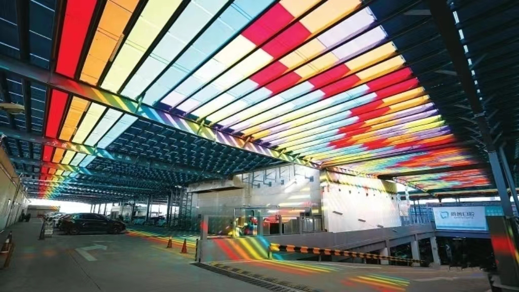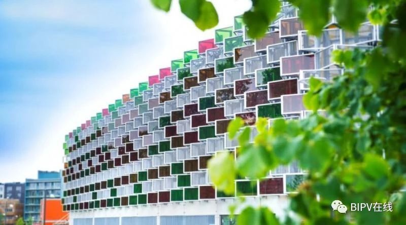 ▲欧洲立体车库彩色光伏幕墙 ©龙焱能源