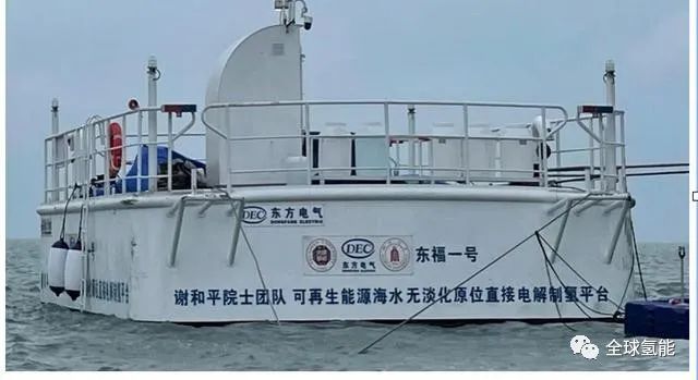 谢和平介绍,为适应海洋不可控台风浪,团队建立了基于全新原理的拓展模型及调控系统,与东方电气集团联合设计了漂浮式海水制氢平台,今年5月,团队在福建省福清市兴化湾进行的1.2 Nm³/h海水原位直接电解制氢成功海试,打造了全球首个海上风电海水直接电解制氢技术示范工程。