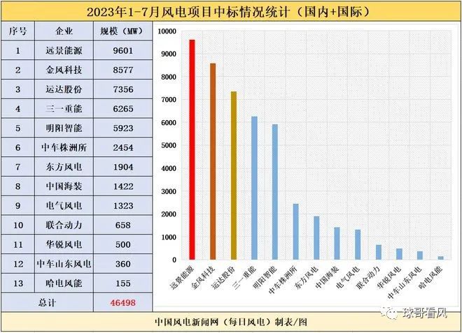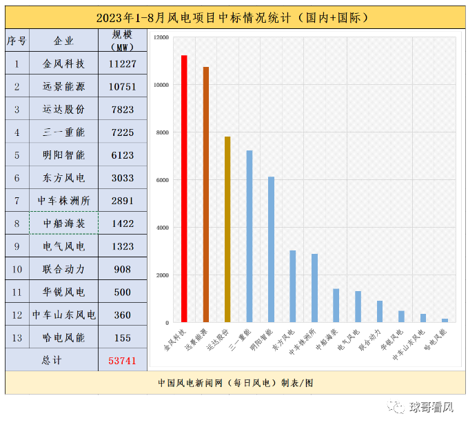 我们先看看1-8月的风电整机中标数据统计结果。根据每日风电统计的公开招标结果显示: