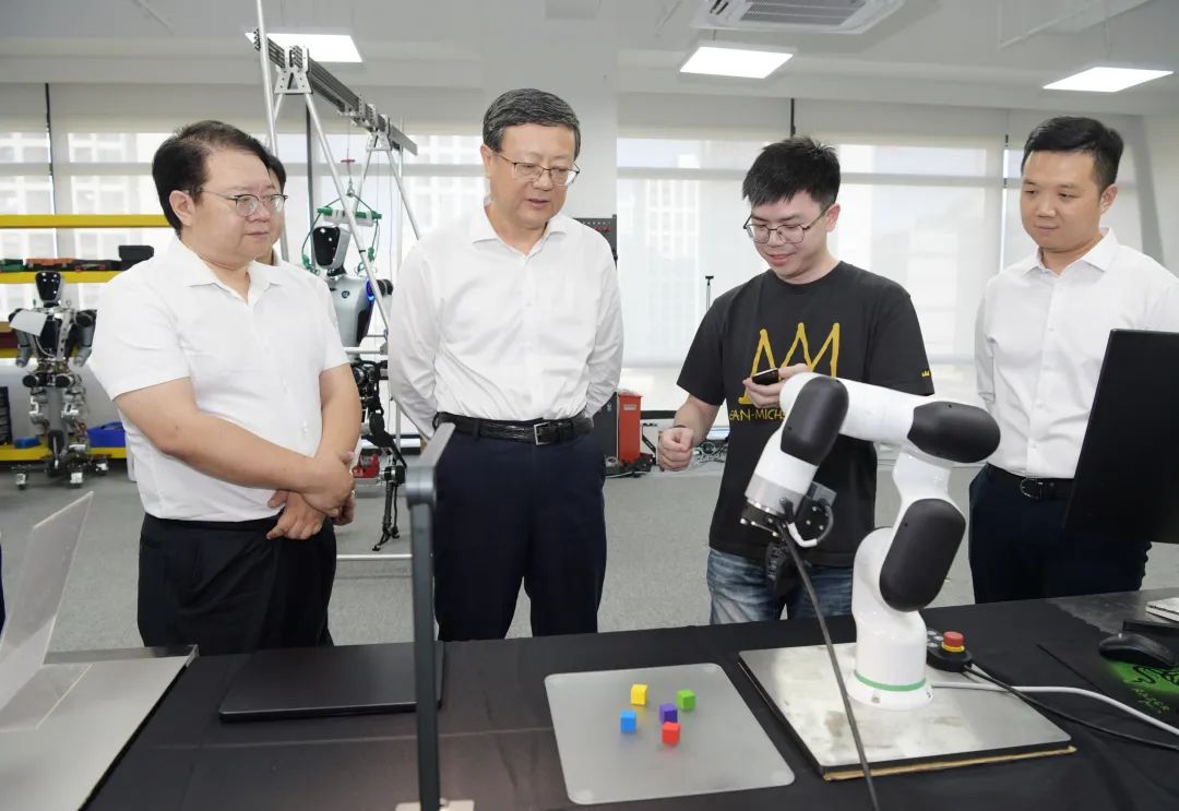 陈吉宁一行首先来到上海智元新创技术有限公司,在通用机器人实验室察看具身智能机器人运动控制、智能任务执行及应用场景模拟等演示,听取公司重点业务、自主研发、应用生态构建等相关情况介绍,了解下一步发展的设想打算。陈吉宁在与公司管理、技术团队负责人交流时说,机器人产业前景广阔、大有可为,也是上海重点发展的未来产业之一。要顺应科技变革趋势、把握产业发展规律,加快推动底层技术的攻关突破,加快形成要素完备的产业生态,加快塑造发展新动能新优势。希望企业保持领先一步的发展优势,瞄准产业链核心环节、占据价值链高端地位,在关键核心技术上实现新的突破,在构建应用生态上发挥引领作用,更好带动整个链条优化供应布局、创造更大价值。相关区和部门要加强高效对接,营造良好环境,搭建开放平台,强化政策供给,提供精准服务,支持企业加快发展壮大。