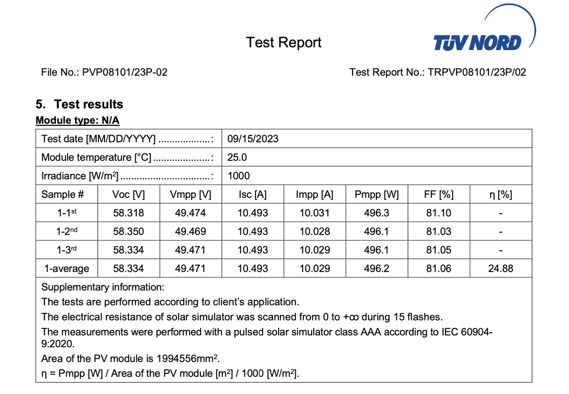 据获悉,今日,由福建金石能源有限公司与高效太阳电池装备与技术国家工程研究中心共同研制的HBC(混合型背接触异质电池)组件,经全球权威机构TUV北德测试认证,组件全面积转换效率达到了24.88%,再创全尺寸晶硅太阳能电池组件转换效率世界纪录!该组件采用金石能源自主研发的高效HBC电池,结合了科学先进图形化设计、低损伤划片技术、低温互联工艺以及BC电池高密度封装方案。