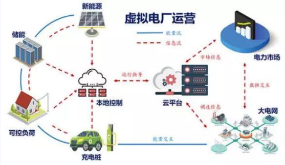 图片:将分布式光伏发电整合成虚拟电站的示意图