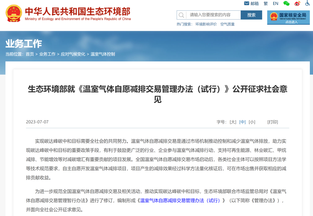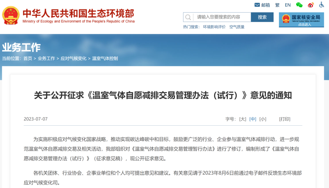 继今年7月7日生态环境部发布《温室气体自愿减排交易管理办法(试行)》公开征求意见之后,8月17日,生态环境部继而宣布全国温室气体自愿减排交易系统上线开户功能,与新的全国温室气体自愿减排注册登记系统实现一对一互联互通,同时开始接受市场参与主体的开户申请。