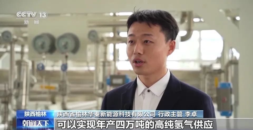 陕西省榆林华秦新能源科技有限公司行政主管 李卓:一期配套了16000立方米的储氢系统和氢气充装站,可以实现年产四万吨的高纯氢气供应。