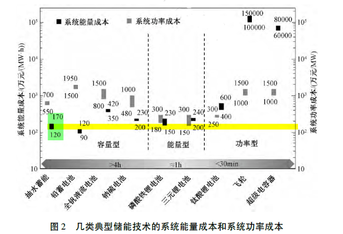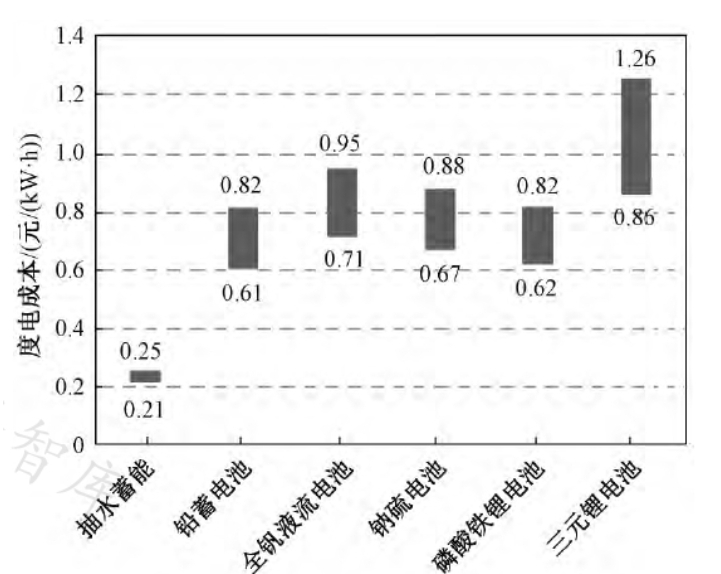 综合调研数据获知,目前抽水蓄能电站的投资成本为60~64亿元/GW,抽水蓄能的系统能量成本为120~170 万元/(MW·h)