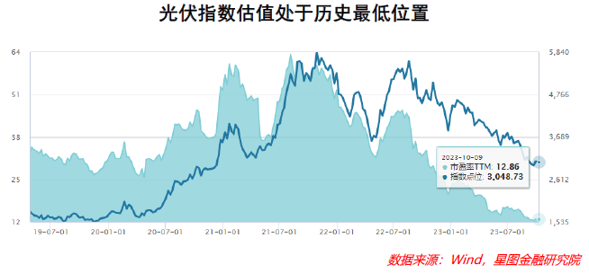 从估值来看,光伏极低的估值给了光伏板块较高的安全边际。考虑到众多的利空和供给侧的悲观预期都已经基本反映到了股价的走势中,光伏指数进一步下跌的空间以及很有限。
