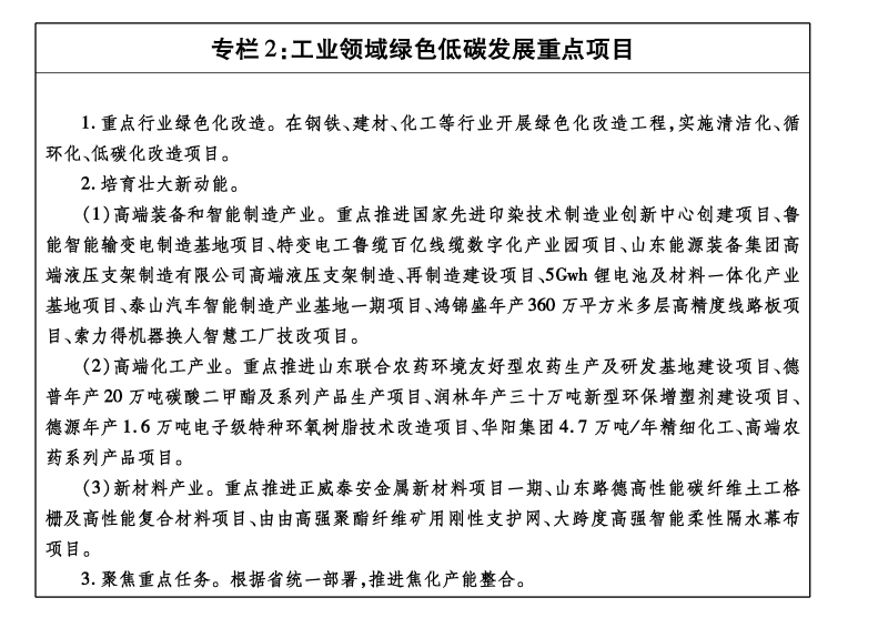 1.加快工业领域绿色低碳发展。实施制造业产业基础再造和13条产业链提升行动,加快产业结构优化调整,培育壮大新一代信息技术、高端装备制造、新材料、新能源和节能环保等新兴产业。持续优化存量,加快淘汰落后产能,聚焦冶金、化工、建材等产业,开展工业技术改造行动,滚动实施“千项技改、千企转型”。开展重大降碳工程示范,推动钢铁、化工等传统产业节能降碳。推动“互联网+”“智能制造”深度应用,推动工业领域数字化、智能化、绿色化融合发展。加强电力需求侧管理,提升工业领域电气化水平。实施重点行业绿色化改造,推行产品绿色设计,建设绿色制造体系。积极创建国家级和省级绿色工厂、绿色园区,实施能效“领跑者”行动。(市工业和信息化局、市发展改革委、市生态环境局、市能源局等按职责分工负责)